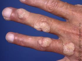 These flesh-colored growths are most often on the backs of hands, the fingers, the skin around nails, and the feet.